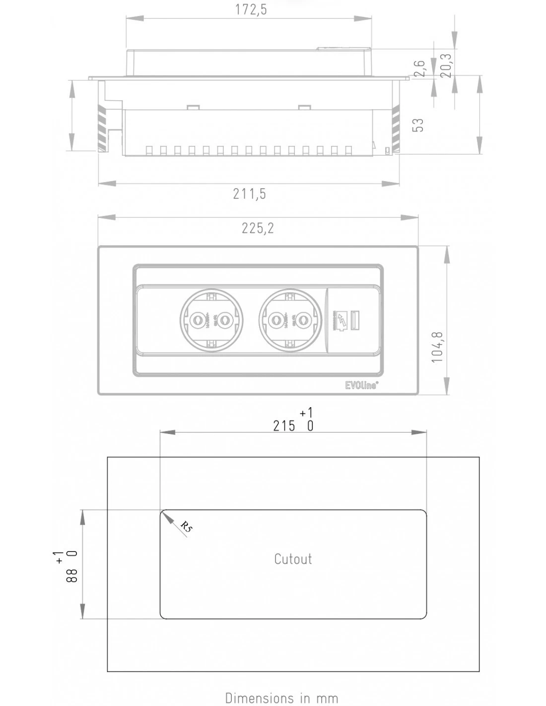 Evoline Back Flip Black Matt Glass 2 Plug 1 USB UK